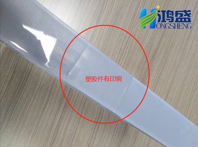 這是一個電磁爐外框,采用了我們一款輕流痕免噴涂塑料,整體上看,效果還可以。不過放大看細節,就會發現有很多不足之處。