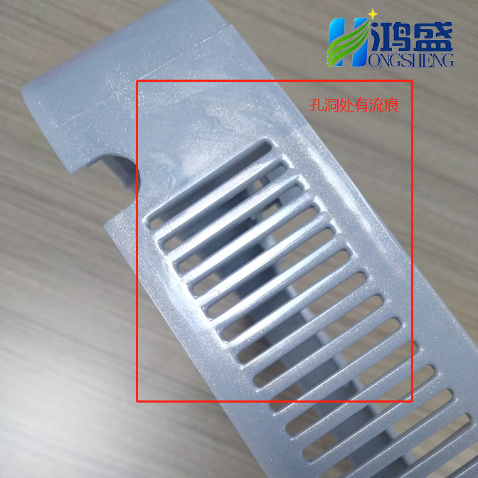 可以發現,側面看,塑膠件有明顯印痕,影響美觀;尾部散熱孔,孔洞處周圍有流痕。這些就是因為結構問題而導致的缺陷,那么應該如何改善呢,下面給大家建議一下技術解決方案: